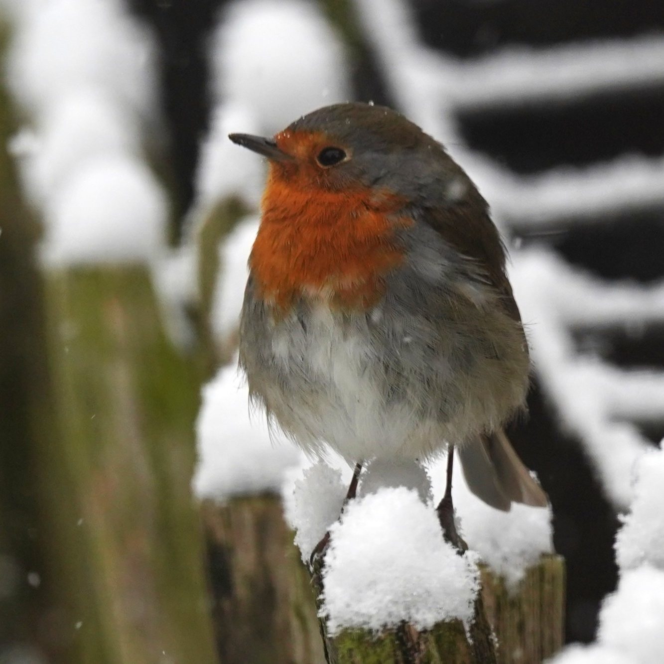 Roodborst in de sneeuw mag in deze serie niet ontbreken.